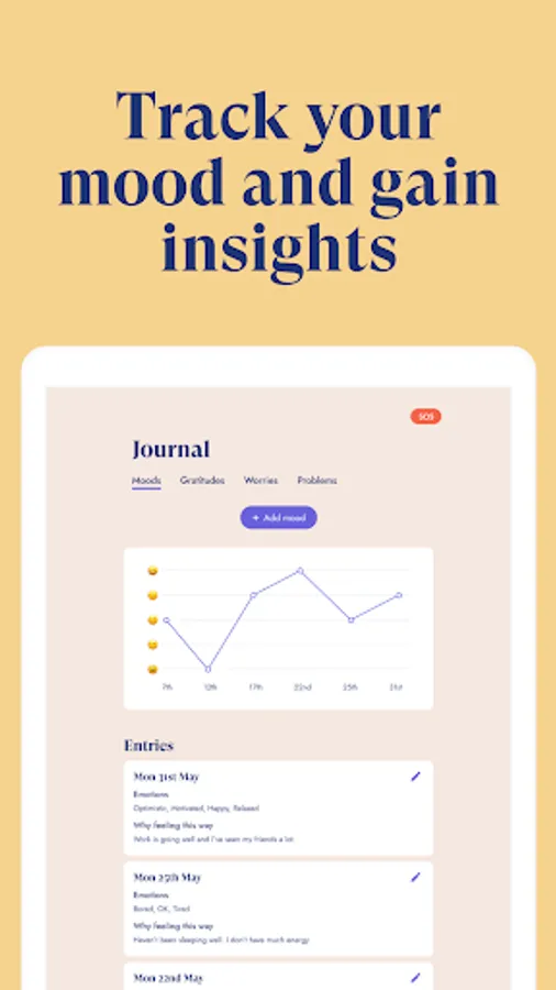 😀 Track your mood and identify patterns of thinking and behaviour.