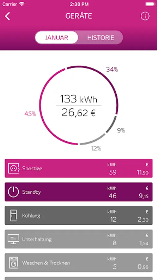 Is there a power guzzler in your household? Find out with iONA. You can see at any time how much electricity is being used and how your behavior is affecting energy consumption and costs.
