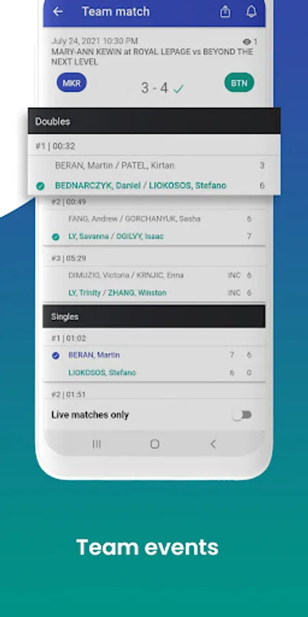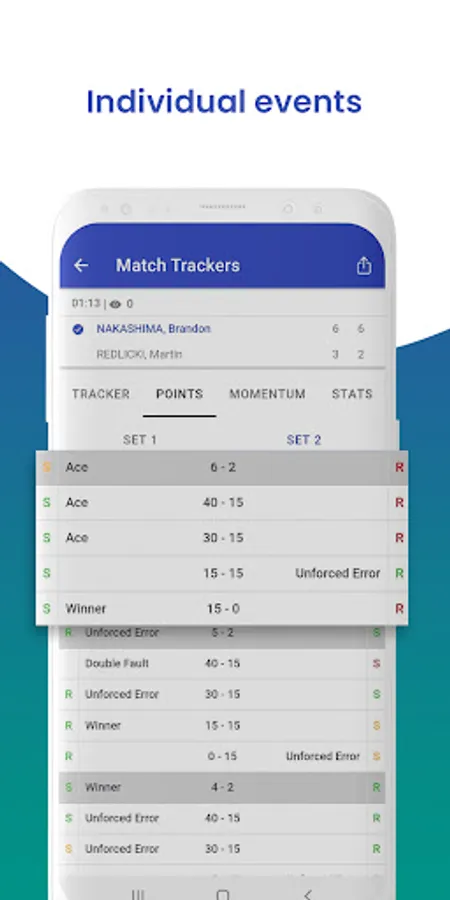 Each push notification you receive will inform you of the current match status and score and you will receive one at the beginning of the match, at the end of each set, and at the end of the match. You can also use push notifications to transfer match ownership by selecting the person you want to transfer the match ownership to. That way tracking a match can be continued on a different device in a matter of seconds.