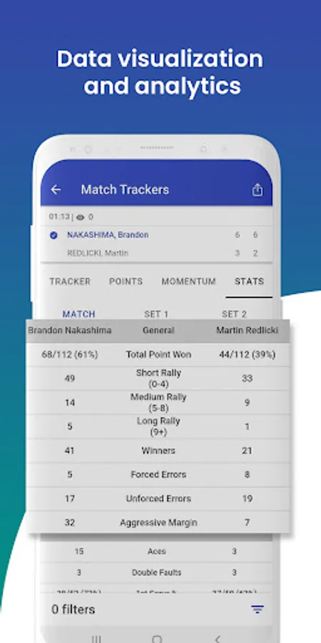 The ultimate free tennis match tracking app that enables you to track and share live scores and stats with your family, friends, and team members. iOnCourt facilitates communication between coaches, parents, and players and helps them stay up to date with match results and statistics using sophisticated tennis analytics.