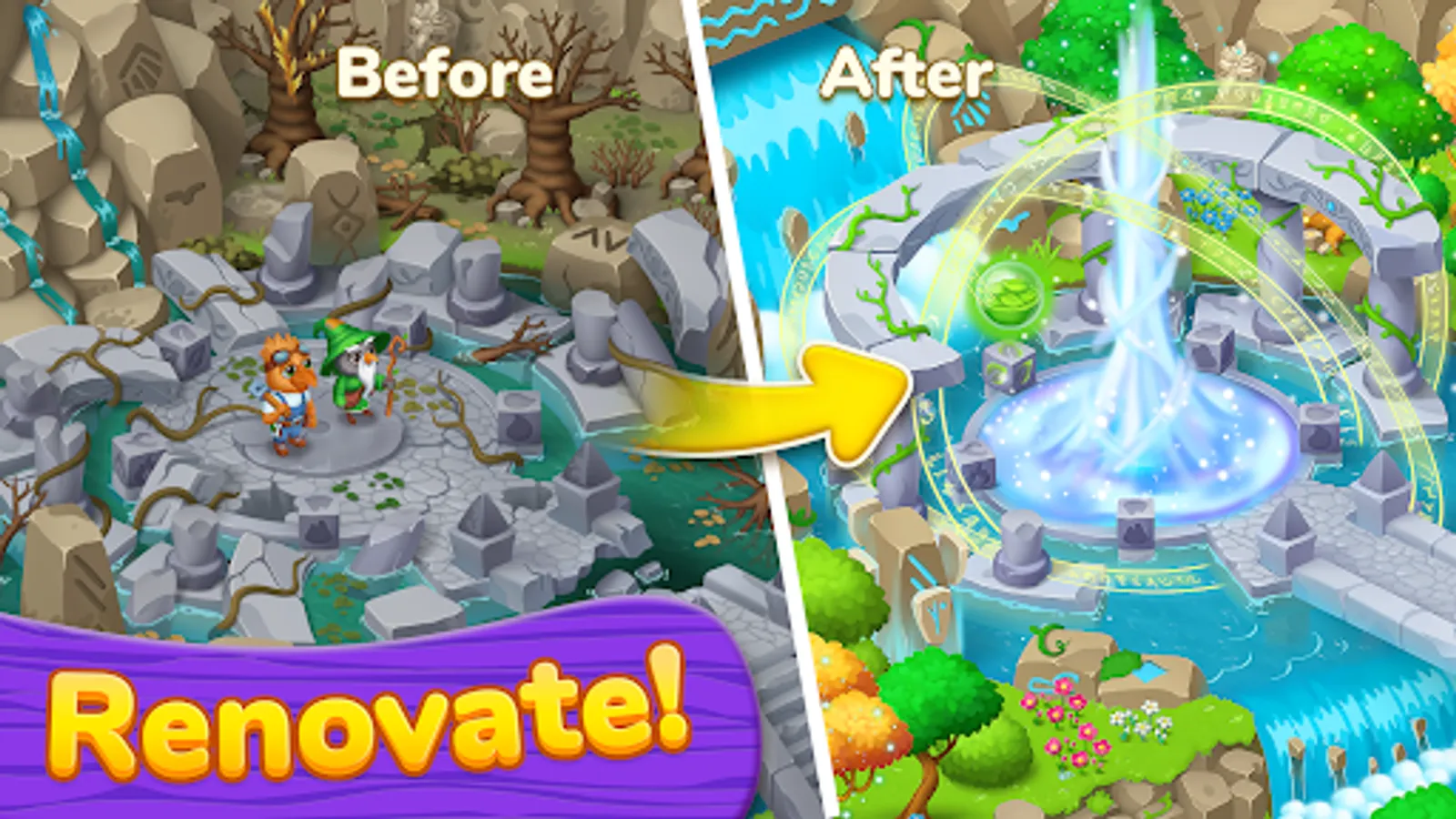 Restore and decorate the town, solve puzzles, and watch out for villains around you. Picturesque locations, exciting game levels, and unexpected game guests are waiting for you.