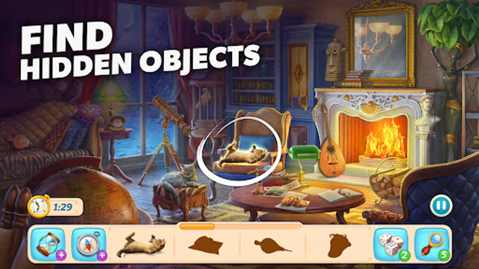 In Secret Mansion, the game's quests take you through the manor's many rooms in search of clues and hidden objects. This may seem like a casual task—scanning mystery scenes, searching for hidden objects, taking seeker’s notes, and collecting evidence—yet there's much more to it! Gear up with a variety of seeker items like magnifying glasses, dice, and photo flashes to search and find every hidden mystery in the most remote corners of the mansion! These powerful boosters in conjunction with your exceptional detective skills will guarantee that you crack all the unsolved mysteries of the manor and find all the hidden objects!