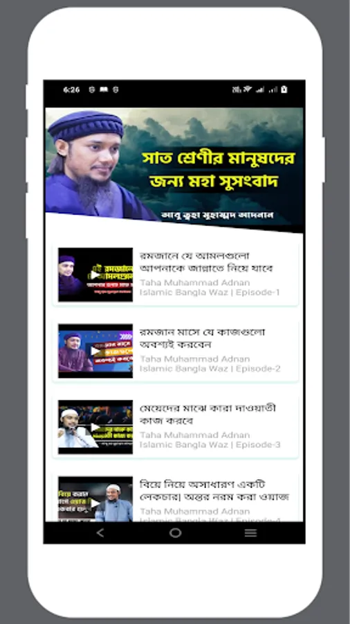 Waz Abu Taha Muhammad Adnan 150 waj mahfil so far app has been created with monorom design and easy user interface.