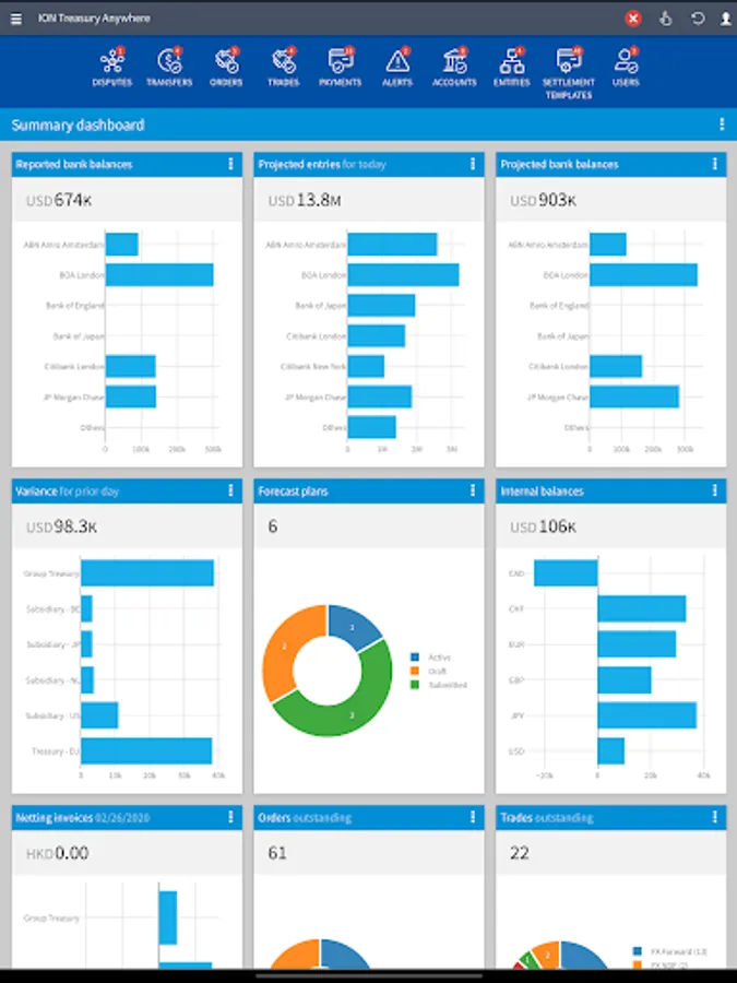 With Treasury Anywhere, teams can access information from their treasury management system at any time, using any device they have on hand – mobile, tablet, laptop, PC – to act fast. Treasury Anywhere extends key financial controls beyond the desktop, empowering treasury teams and executives with up-to-date cash, trade, and payment information for effective decision making on the move. Additionally, corporate treasury can give remote treasury professionals easy access to their treasury workstation.