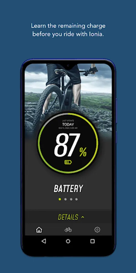For own personal e-Bike experience, You can quickly access to battery info and many other features in a sporty interface.