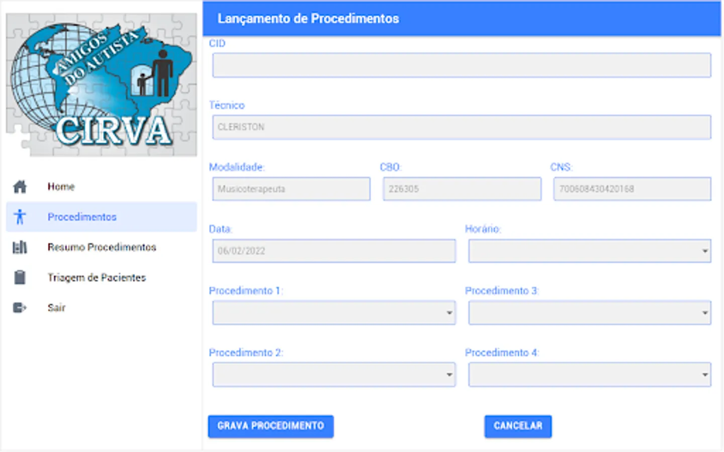 Application for *INTERNAL* use by CIRVA - Autistic Assistance Entity - Launch of Procedures for Assistance to Our Assisted