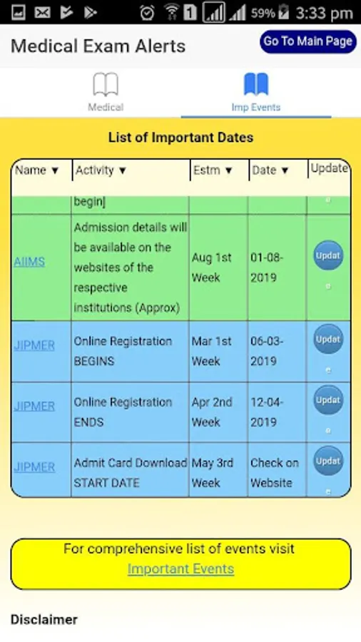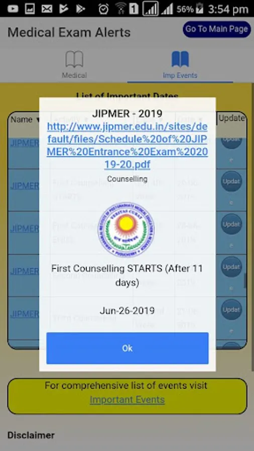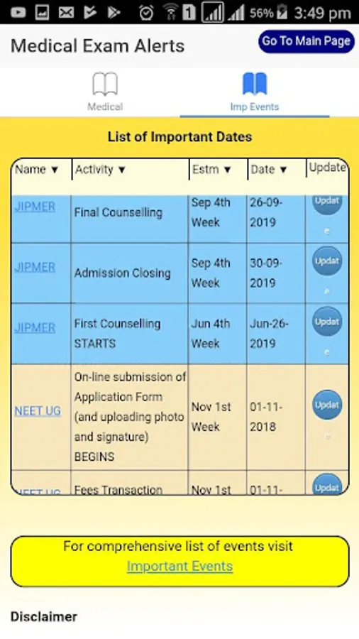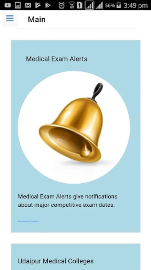 Medical Exam Alerts app is a very useful tool to remind oneself about the upcoming medical exams related events. The app gives alerts about the important events (like registration date, last date to pay fees, admit card download date etc.) related to major medical competitive exams conducted in India for class XII students well in advance. Specifically, the app gives notification alerts well in advance before and on the day of the event, so that the users are reminded in advance and get enough time to prepare for the events.