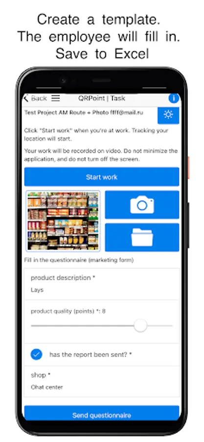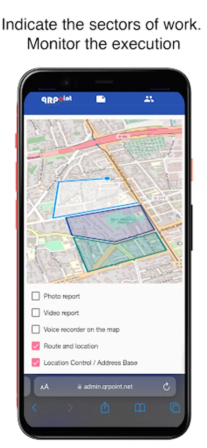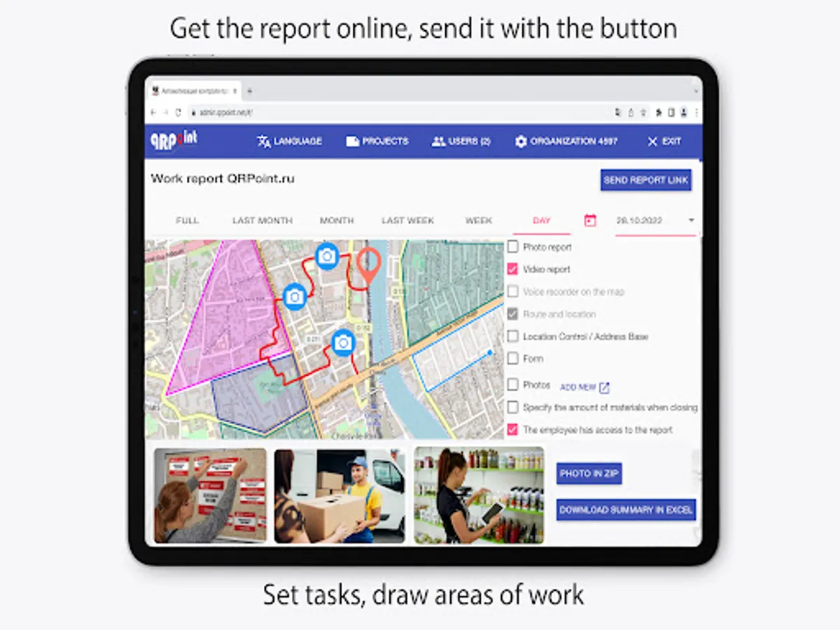 If you are a manager, you can set tasks by simply drawing a sector on the map, and then see on the report how much time and photos were taken by your employee.
