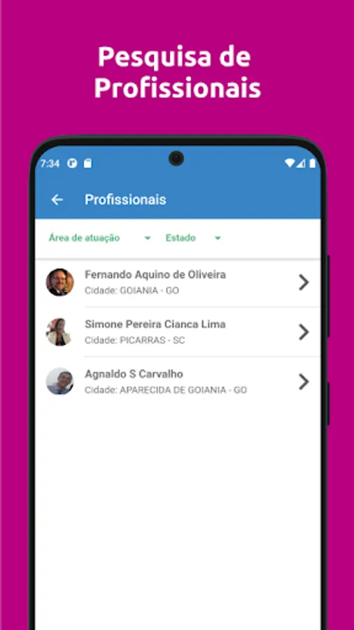 In it, you will be able to make queries by profiles of professionals by Federative Unit, where the application will make available to you, contact data, for information and hiring.