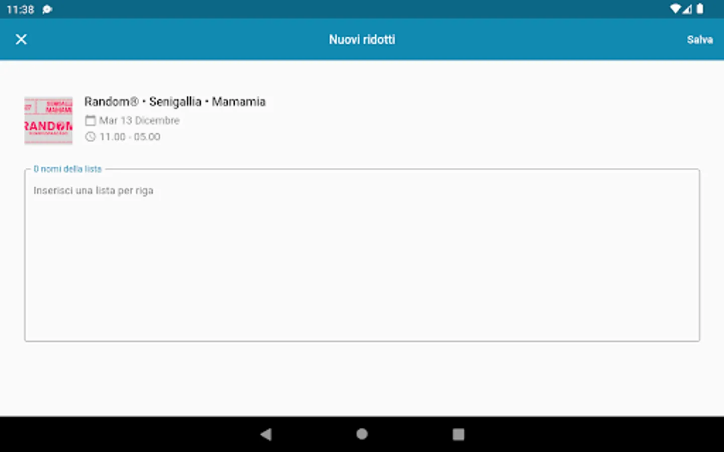 Clublist is the application that allows you to manage easily and fast the public's input in your room, giving you the statistics in real time. Thanks to an intuitive and functional graphics, you can manage and control the input lists right from your smartphone or tablet.