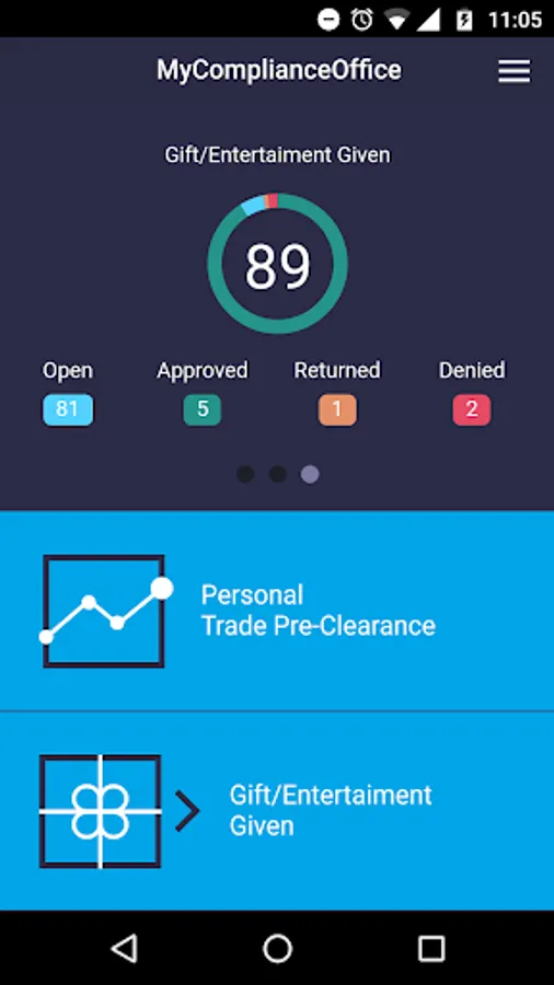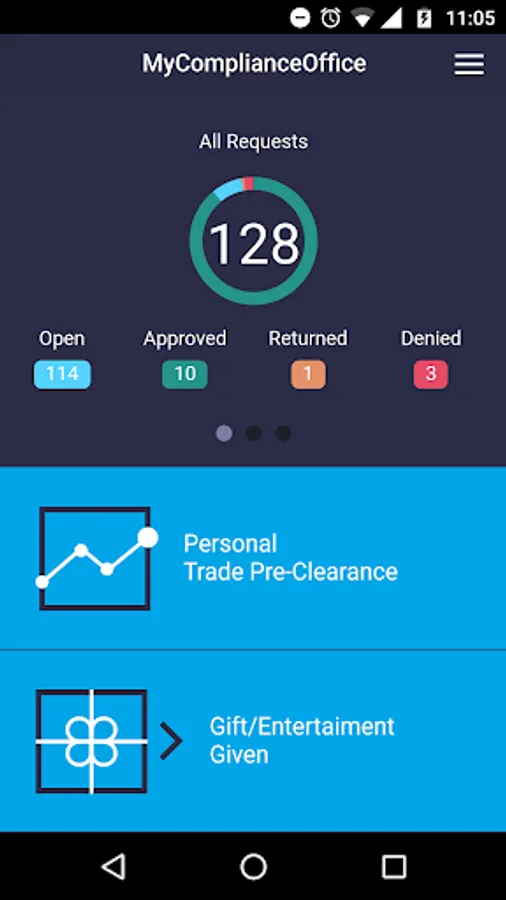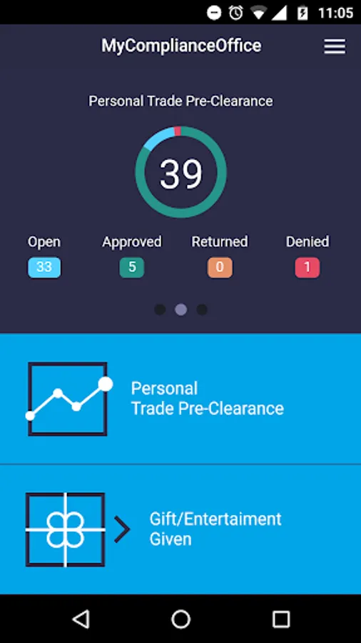 • Dashboard view of the status of Trade Pre-Clearance requests