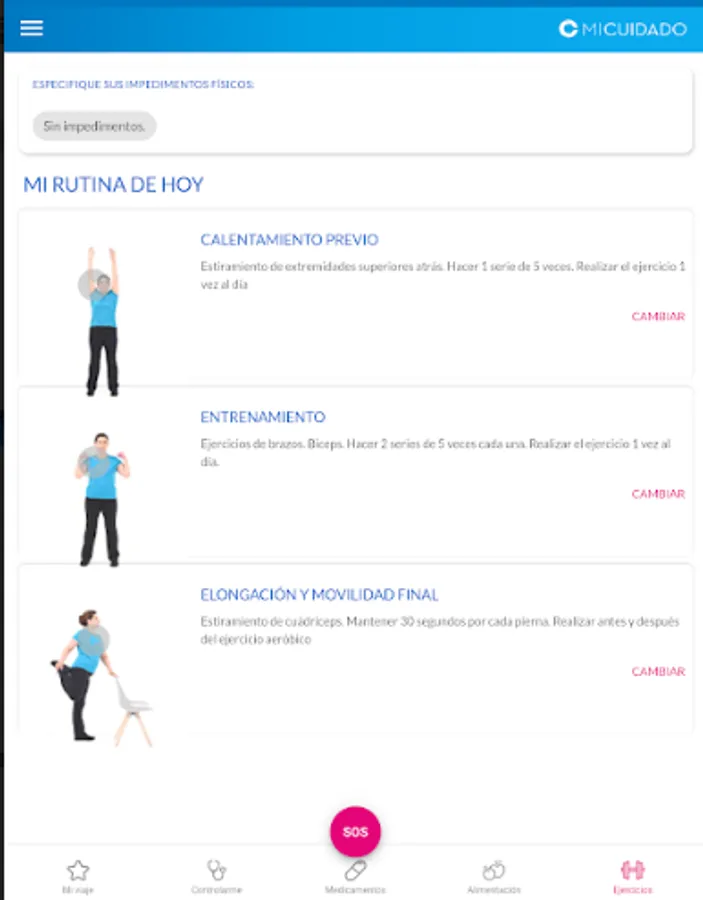 In addition, the APP has a food section with dishes that are designed for diabetics, hypertensive people or people with cardiac disorders. There is also a section on simple exercises to do at home, as well as a medication reminder.