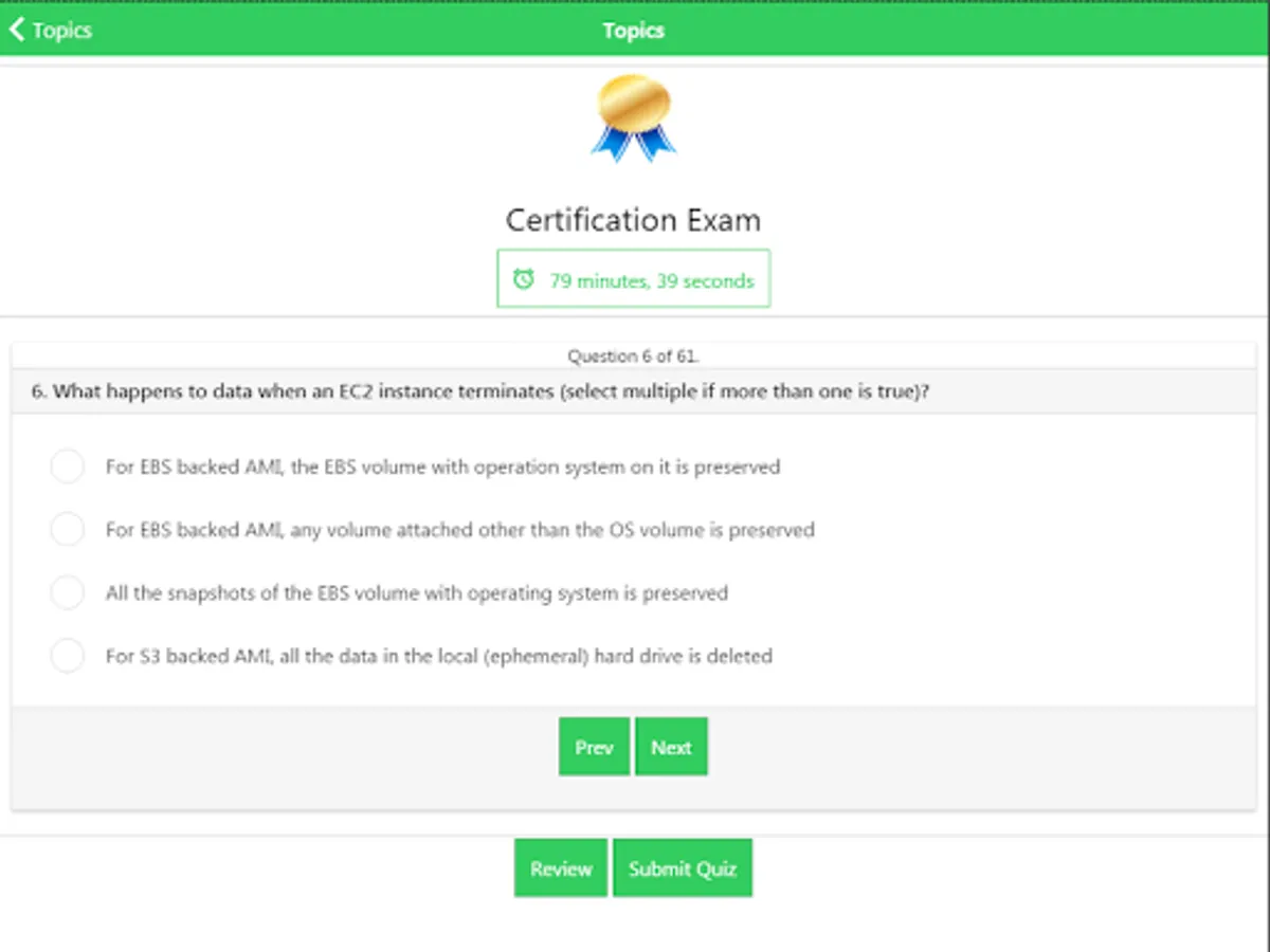 This app lets you practice questions for the Certified Solution Architect- Associate Level exam.