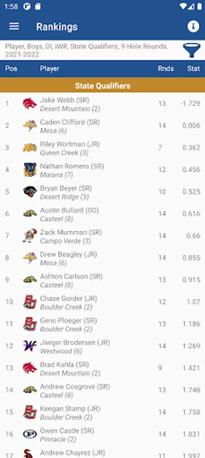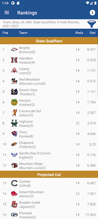 After tournaments are finalized, state, regional and local rankings are automatically updated to show how teams and golfers stack up against their competition. Statistics are captured and aggregated on the mobile app so coaches, players and spectators can track progress throughout the season.