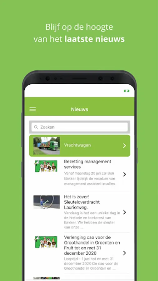 With the Bakker Insite app, employees of Bakker Barendrecht stay informed of the latest news, but they can also look up an employee for a personal message or contact details. In addition, it is possible to quickly find useful documents or links.