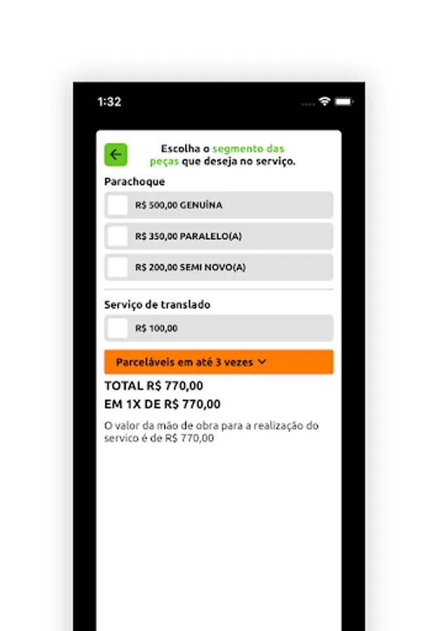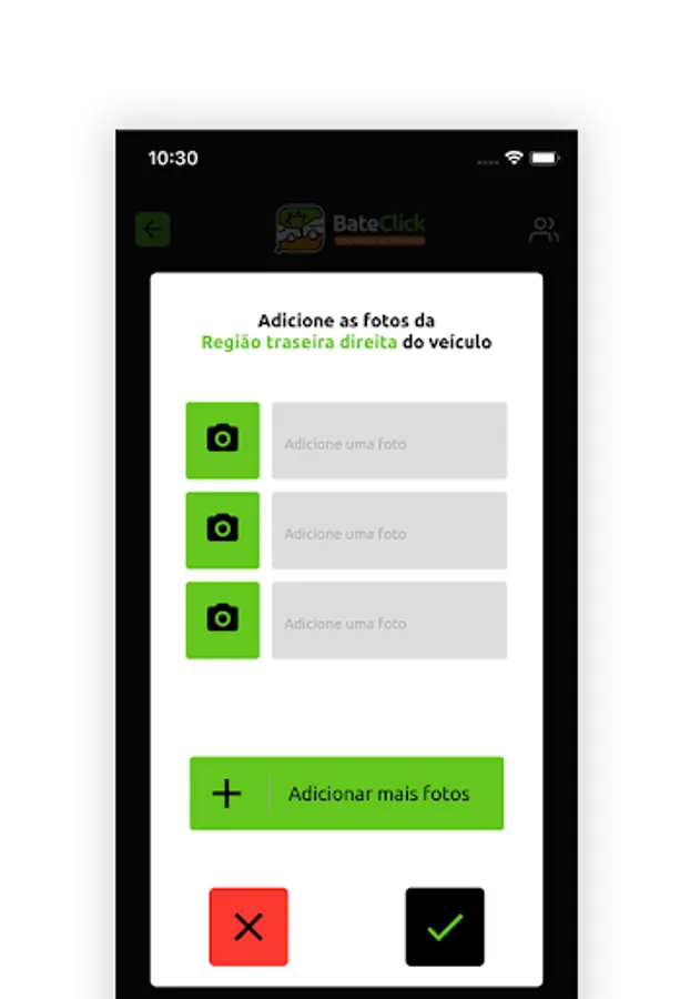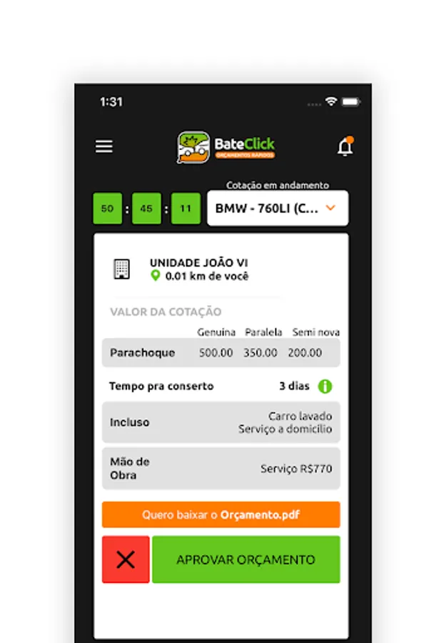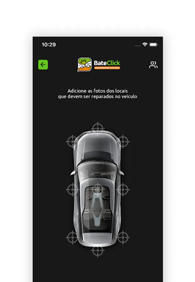 - Download the App (free), take PHOTOS of the damaged area, inform the car model, the region (zip code) you want and that's it!