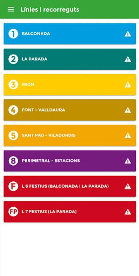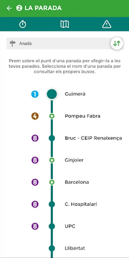 - My stops: Direct access those stops marked as favorites. Clicking on a specific stop time gives you no real next bus and the next scheduled departures. It also allows, check incidents or download a pdf with the complete schedule of the line.