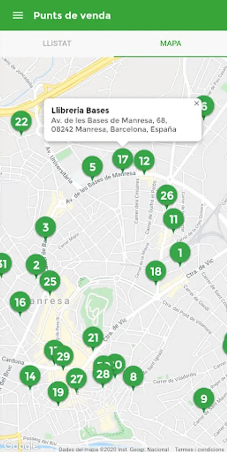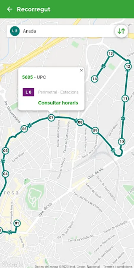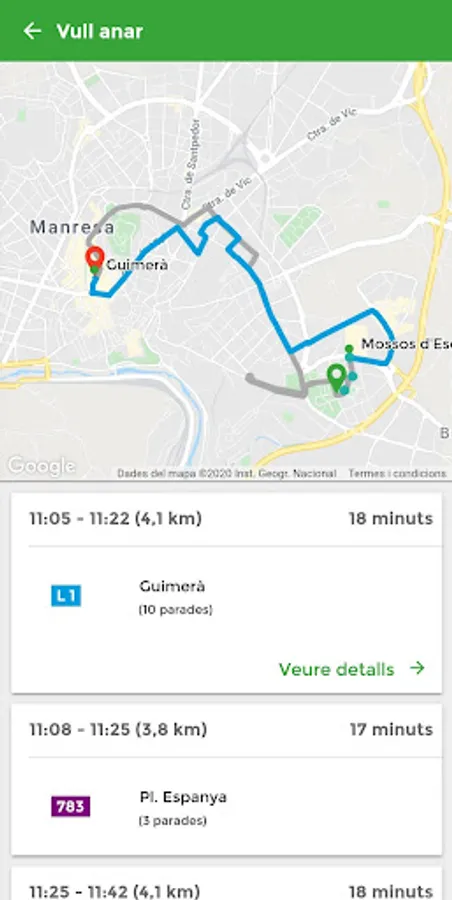 - I want to go: Route planner shows you the best bus route between two points in Manresa.