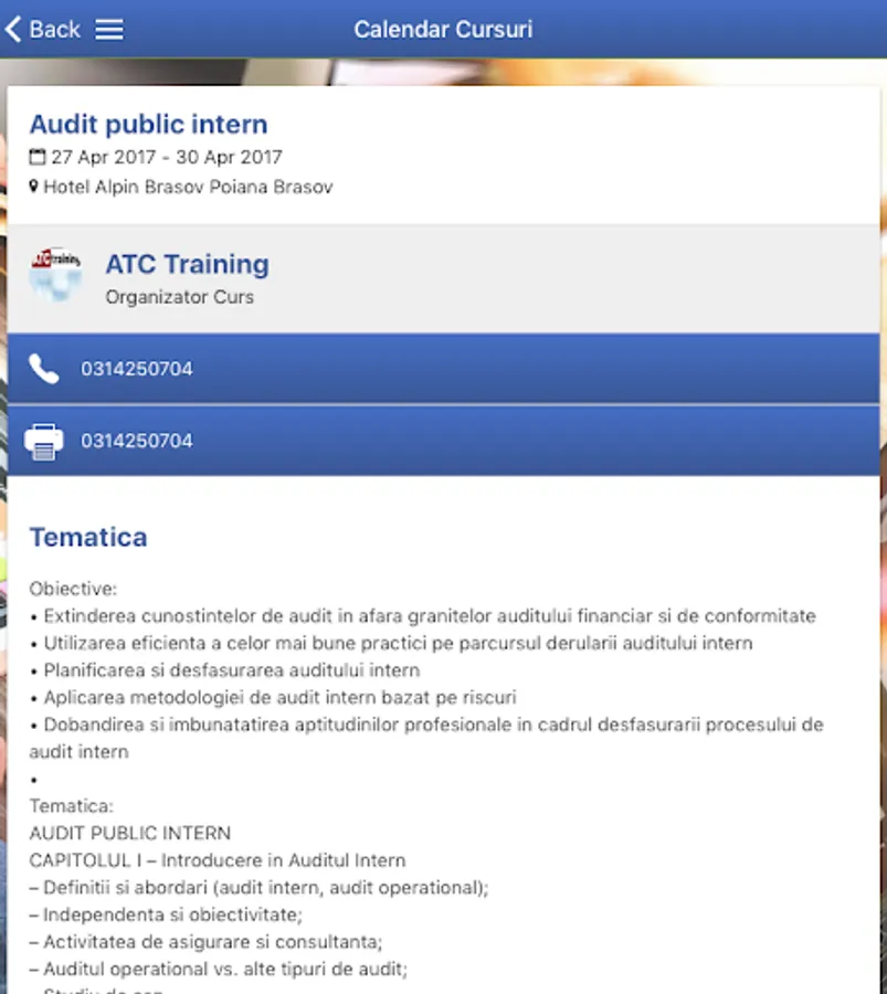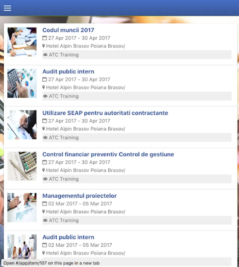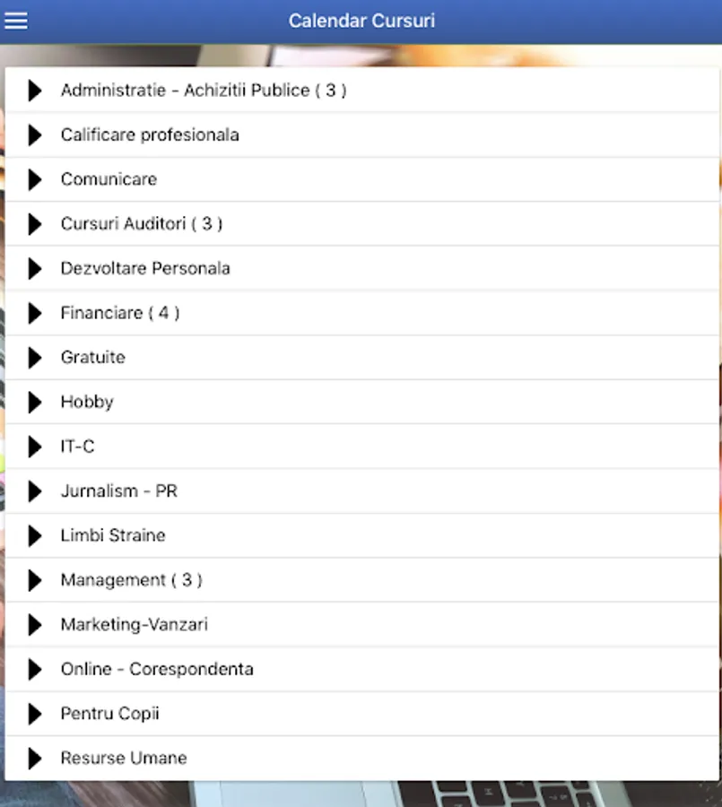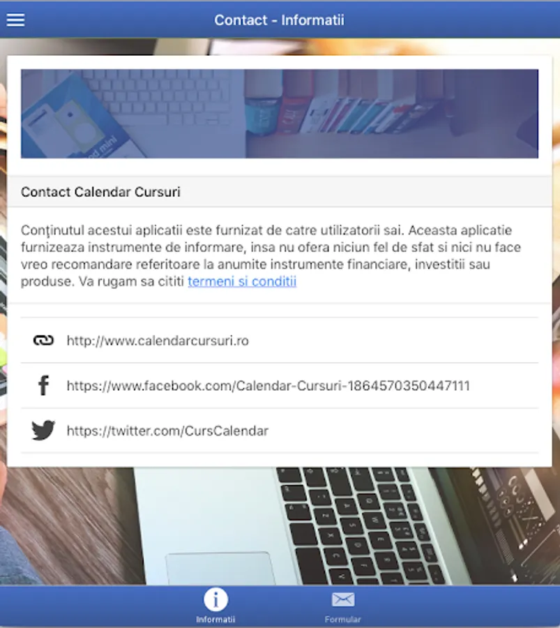 Courses Calendar app presents courses organized by the portal partners CalendarCursuri.ro courses in various fields.