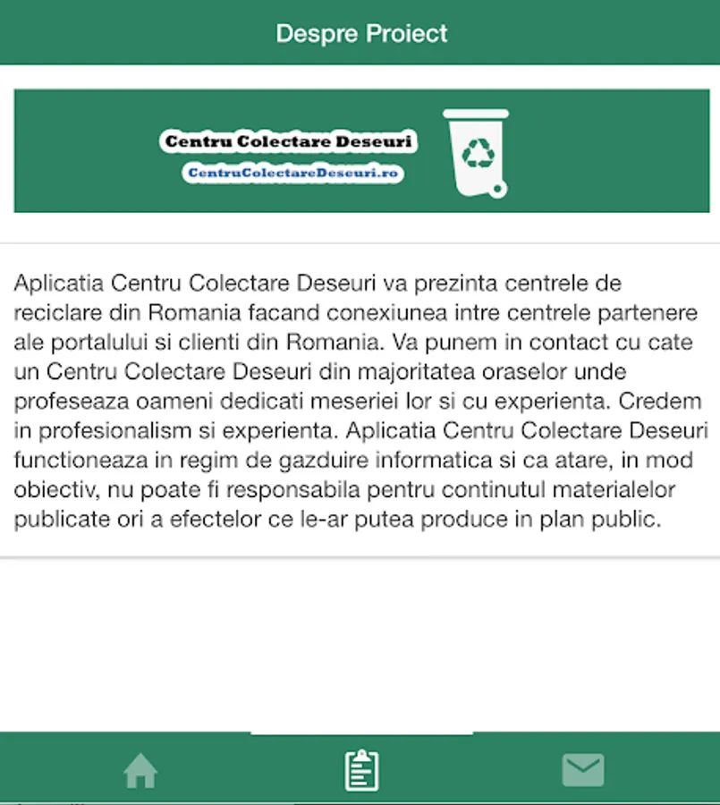 Waste Collection Center application presents recycling centers in Romania making the connection between partner portal and customer centers in Romania. We in contact with one waste collection center in most cities where dedicated people practicing their skills and experience.