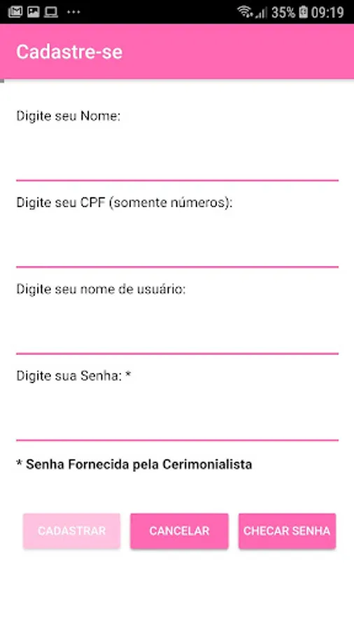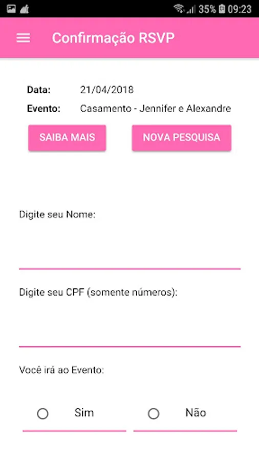 Application Created so that the guests of the Events can make the Confirmation of Presence for the Event that he was invited, by means of a previous register, with release of access password by the ceremonialist himself
