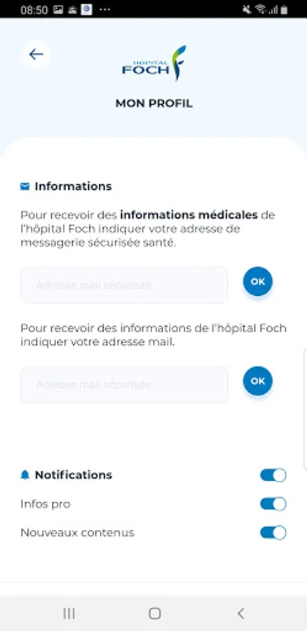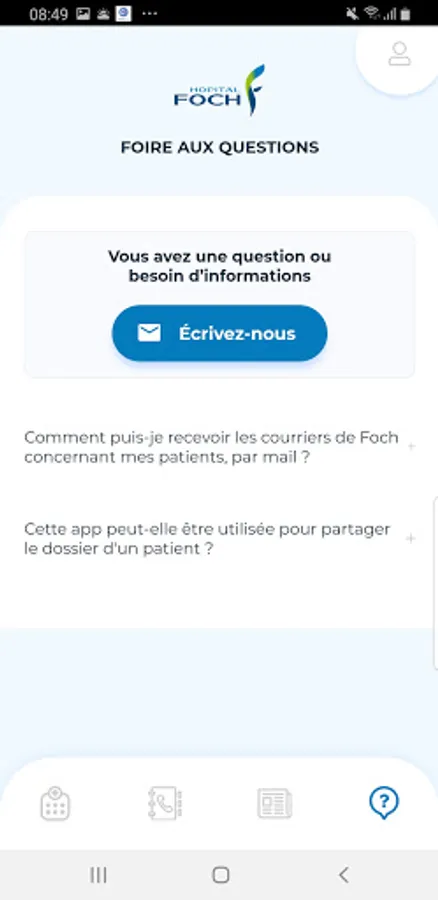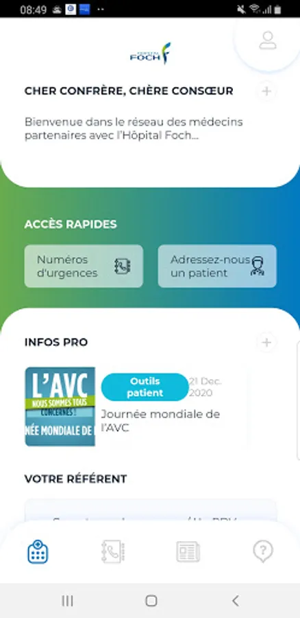 The "Hôpital Foch Pro" application is a restricted access, reserved only for medical professionals, which facilitates the initial contact between city health professionals and doctors at the Foch Hospital.