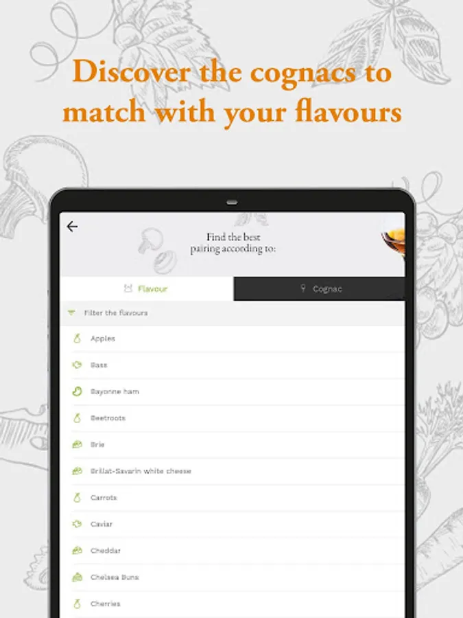 Thanks to a clever search function split by flavours or types of cognac, this app guides you to find the perfect match.