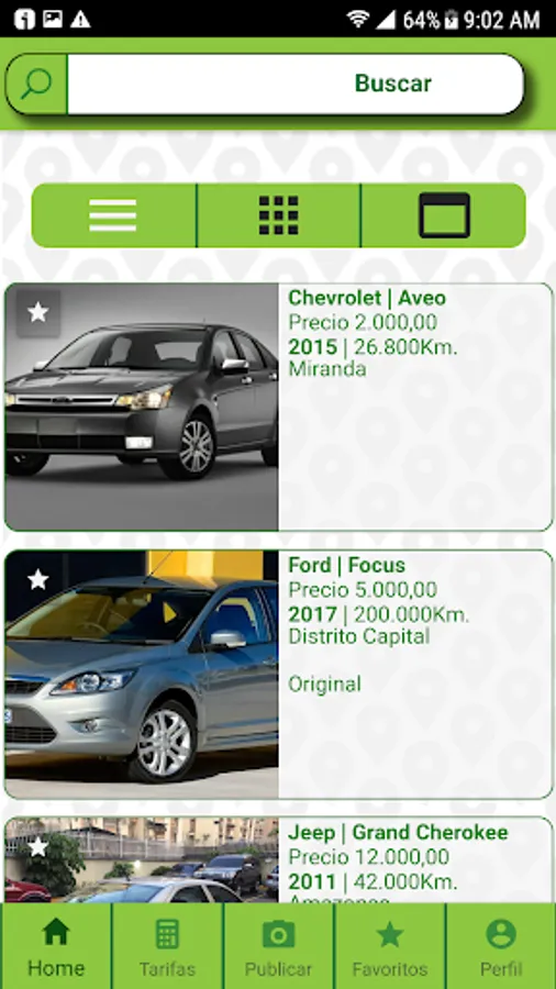 vehicle through customized by type, make or model and select your preference, or sell your vehicle from the ease of your cell loading photos search, you can also select publications and mark them with the symbol of favorites, then remember when entering again.