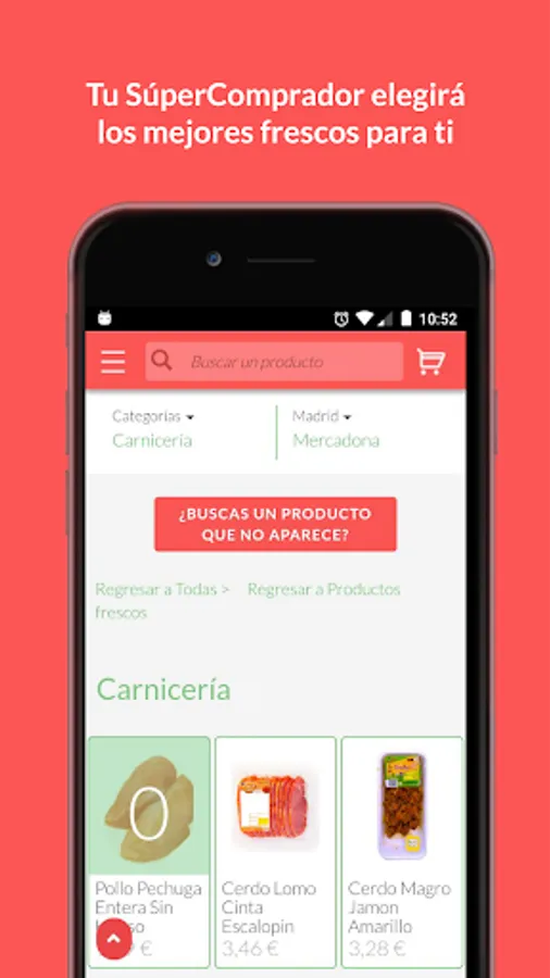 We work with supermarkets and specialty food stores in the cities of Barcelona, Madrid, Malaga and Seville. Our SúperCompradores are experts in the selection of fresh, even WhatsApp will contact you via phone call or to suggest changes if product substitutions and offers.
