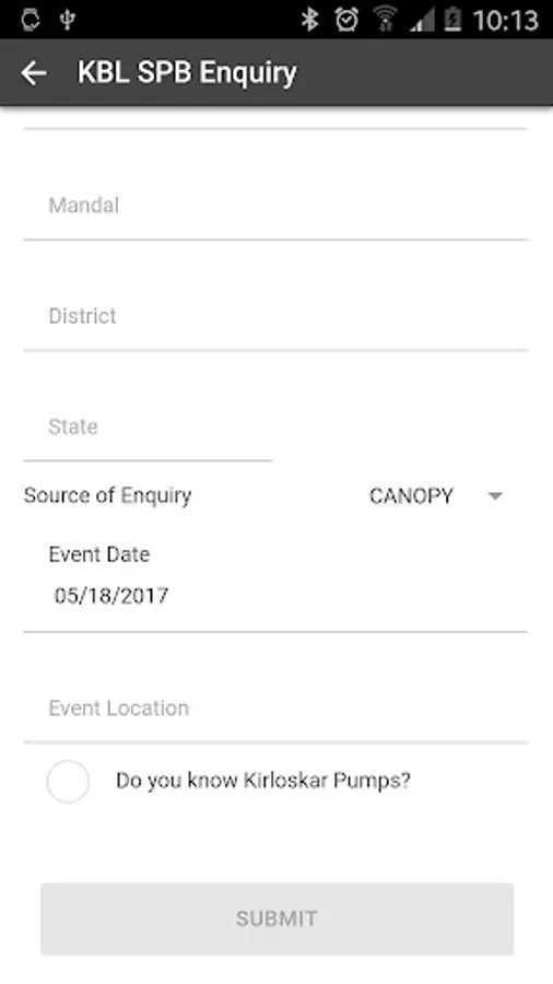 Kirloskar Pumps Enquiry Management System to gather the potential lead details, product interested, assigned coupon number details during direct marketing campaigns like van campaign, exhibitions, canopy, product demonstrations etc. Lead will get a SMS once the details are submitted to company. KBL follows up with the customer regarding the product purchase. Customer details are reserved with KBL only. Not to share with any other companies. Authoriation to use the App is restricted and it’s absolutely the interest of KBL to provide the authorization with username and password. This App is not for public use. This App is developed for internal use of Kirloskar Brothers Limited(KBL) for KBL employees and other registered vendors only. Authorization is restricted for limited period only.