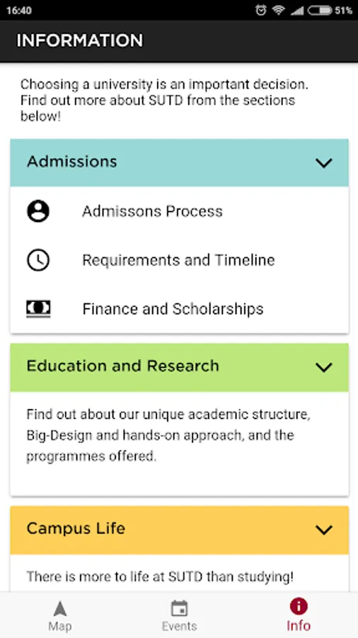 An application to find out more about SUTD, geared towards incoming freshmen
