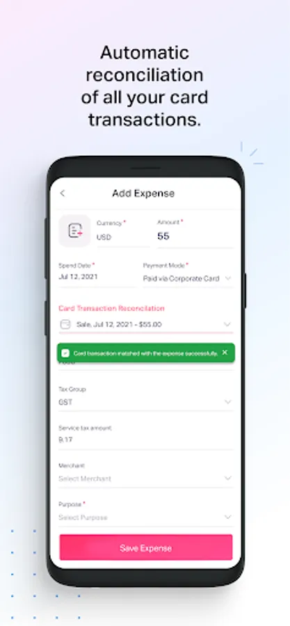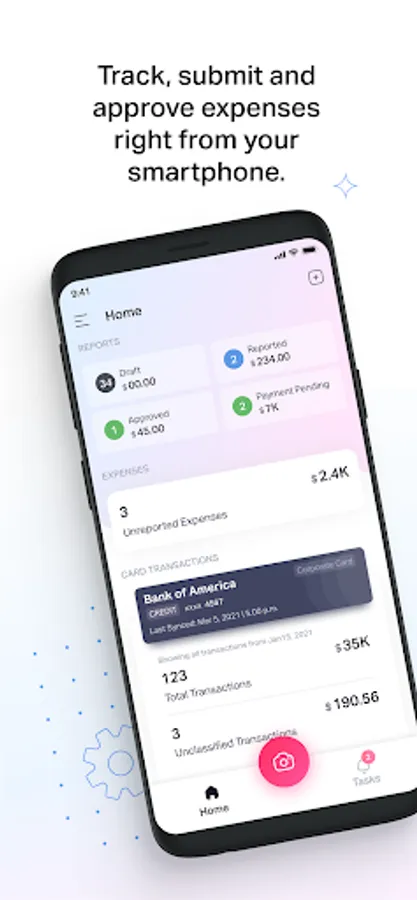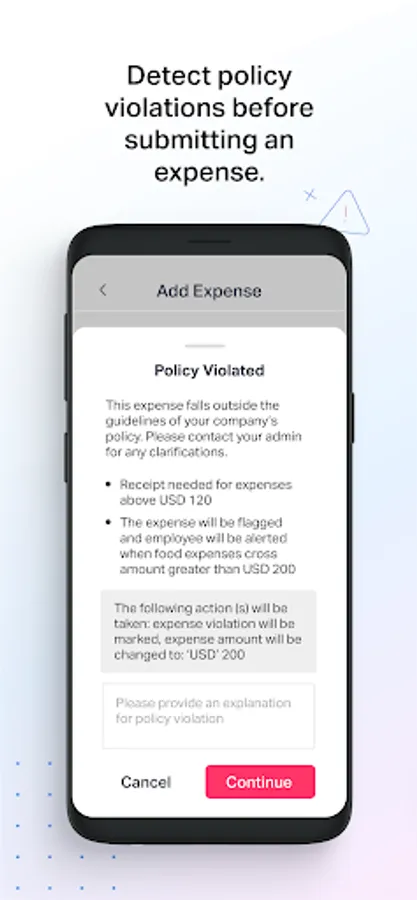 For large enterprises, the mobile app supports automatic policy checks to help employees spend in compliance with company policies, and flag violations in real time.