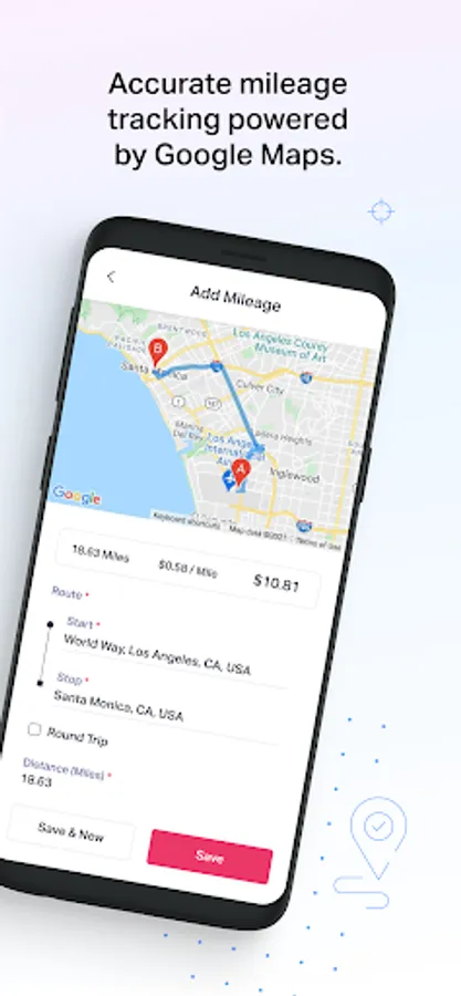 * Track mileage using Google Places API with support for round trips