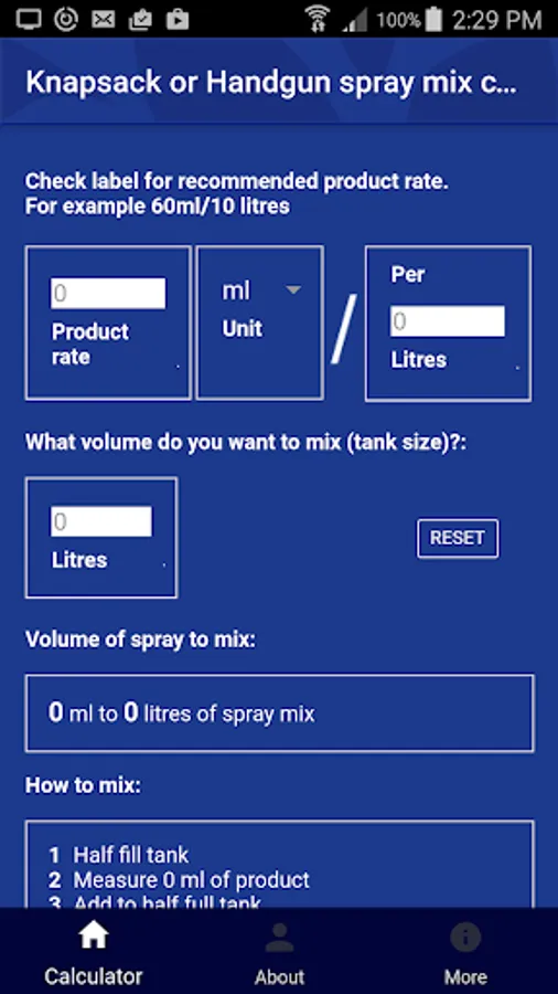 Calculate the quantity of agrichemical product required to make up a specified volume of spray mixture from a required concentration described on a label.