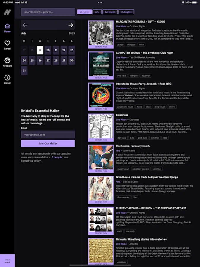 The only app with all Bristol's event listings, Headfirst Bristol is our trusted what's on guide. Use this app to explore events and buy tickets.