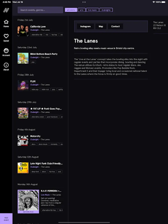We work directly with Bristol's venues, event promoters and producers to further arts in Bristol and operate on a strictly not-for-profit basis. Our booking fees are the lowest in Bristol and are regularly used to support charities and good causes in the city. This app is free and contains no adverts.