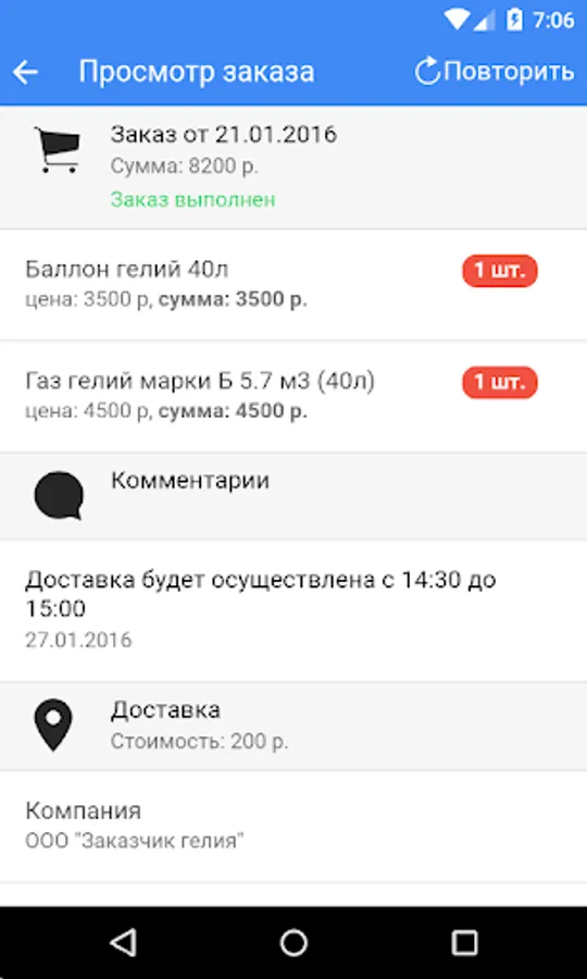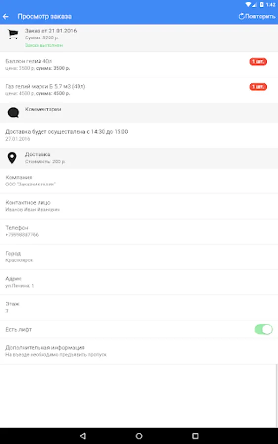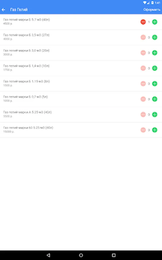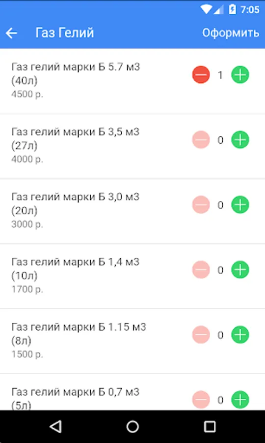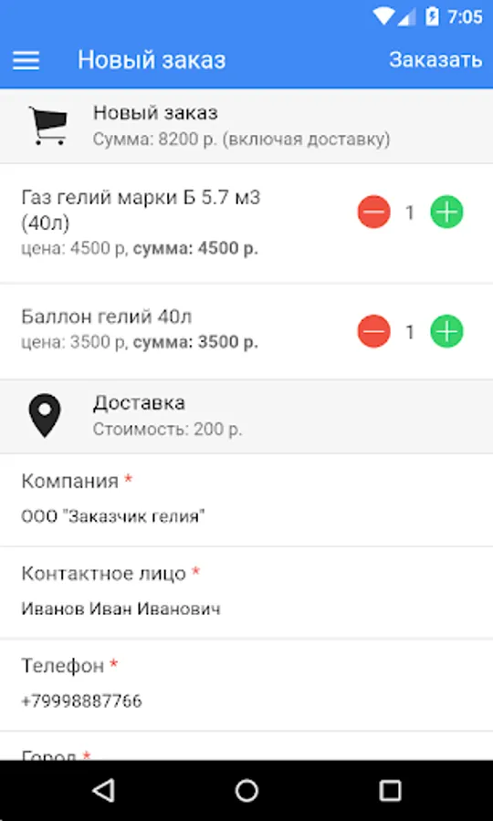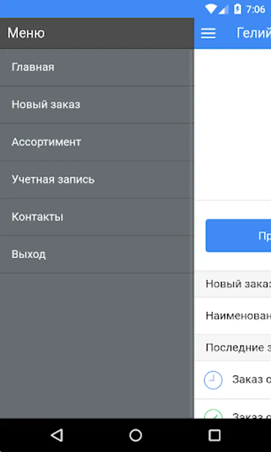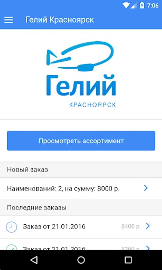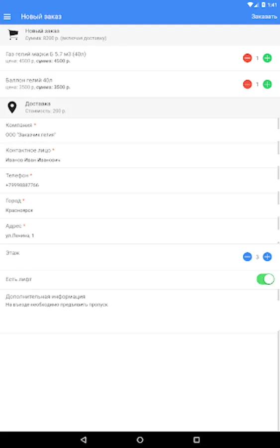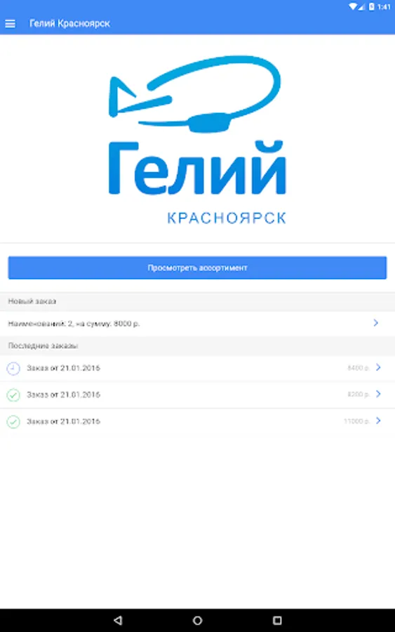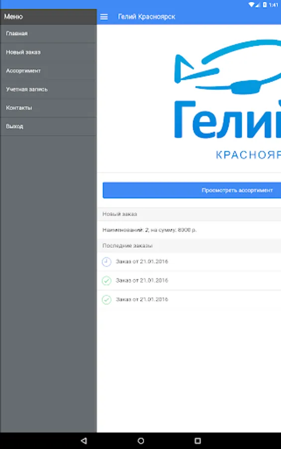 The application allows multiple actions to order helium balloons and equipment in the city of Krasnoyarsk and beyond.