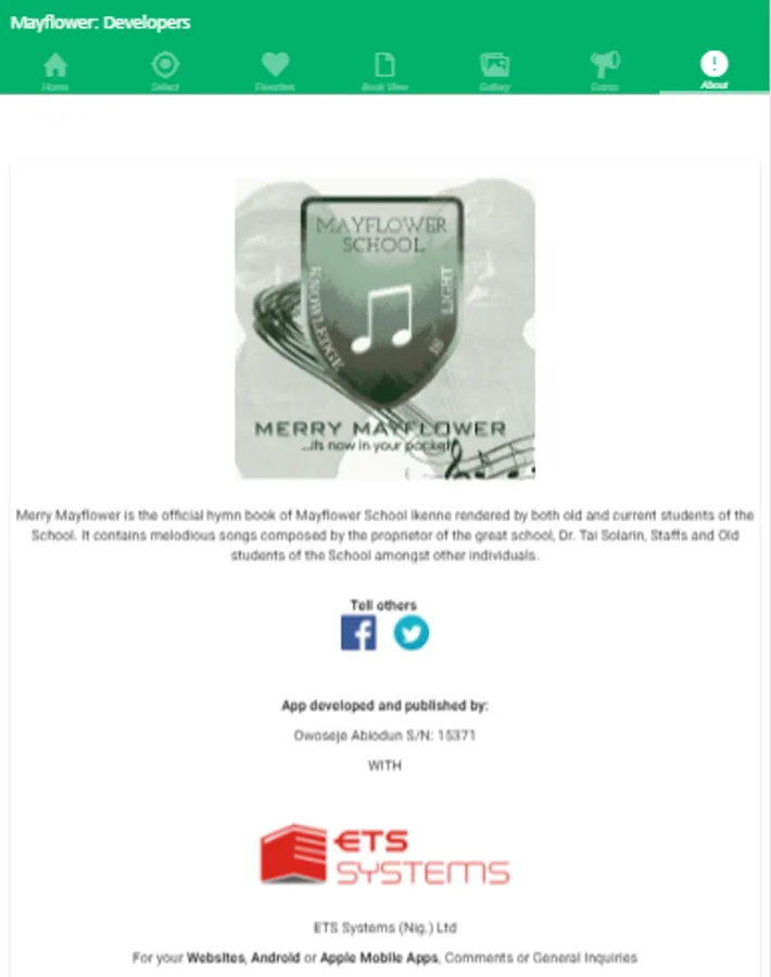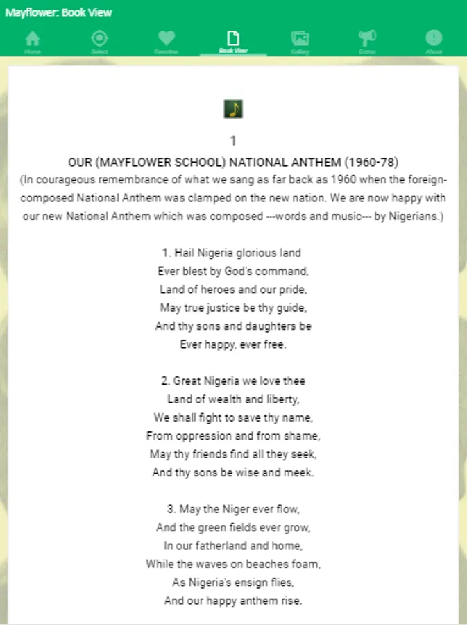 Merry Mayflower is the official hymn book of Mayflower School Ikenne rendered by both old and current students of the School. It contains melodious songs composed by the proprietor of the great school, Dr. Tai Solarin, Staffs and Old students of the School amongst other individuals.