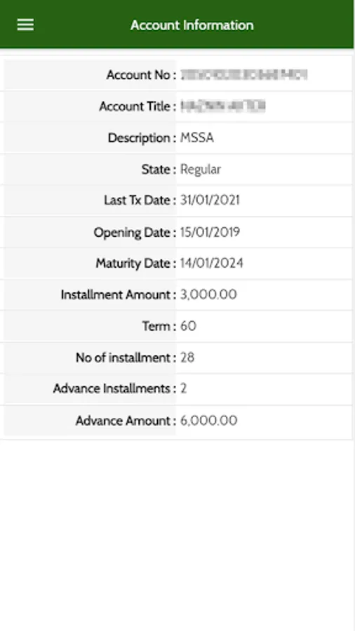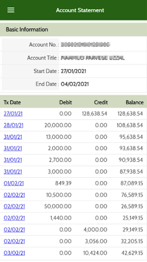 - Account detail of a particular account in iBanking ProfileAccount Statement