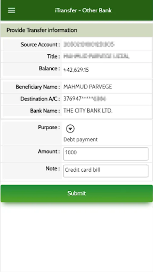 - Transfer fund to IBBL accounts. – Send fund to any IBBL account.iTransfer(Other Bank)