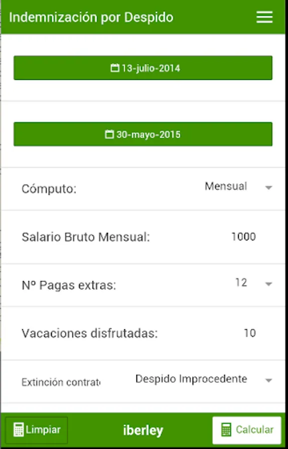 Tool that allows the calculation of compensation for dismissal updated according to the Law 3/2012, of 6 July, on urgent measures to reform the labor market, published in Official Gazette. Number 162 of July 7, 2012.