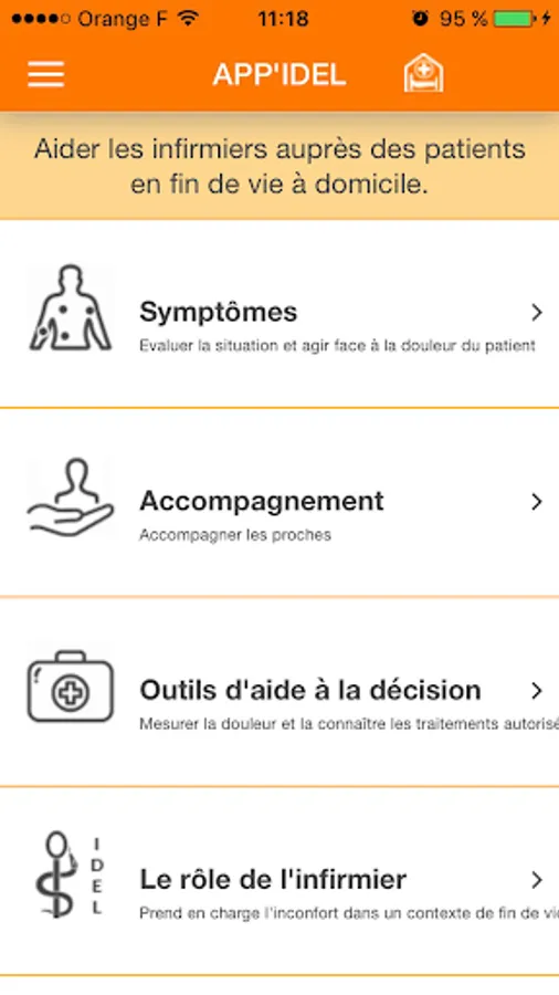 Applidel is an embedded application provides information on the main symptoms experienced in palliative care. It is an aid to nursing clinical approach, a tool for training and awareness of palliative approach.
