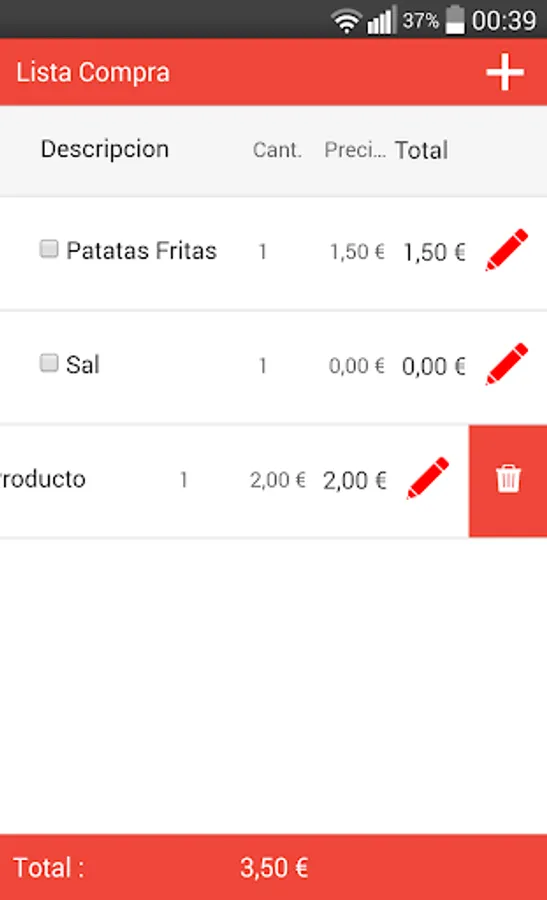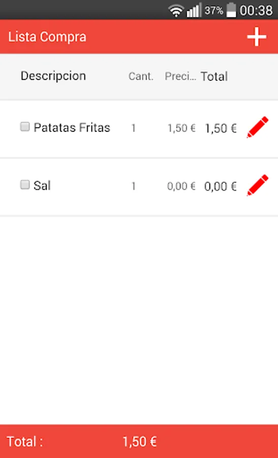 Create a list of easy and simple purchase, you can see the price, quantity, multiplication of the amount for the price and total purchase.