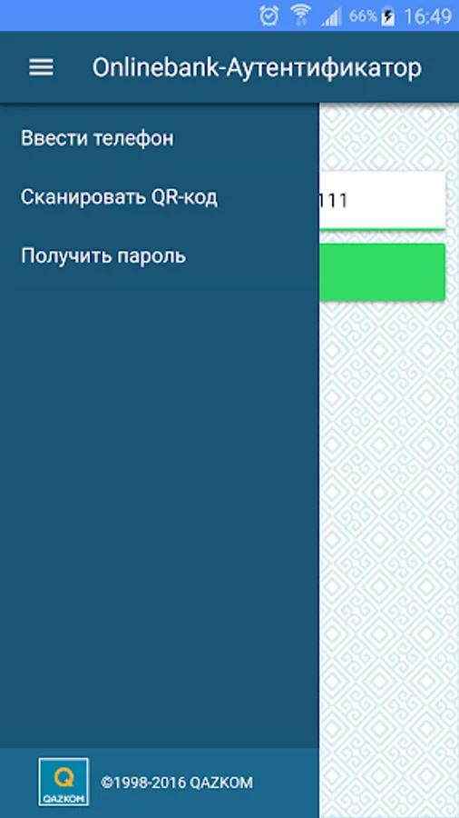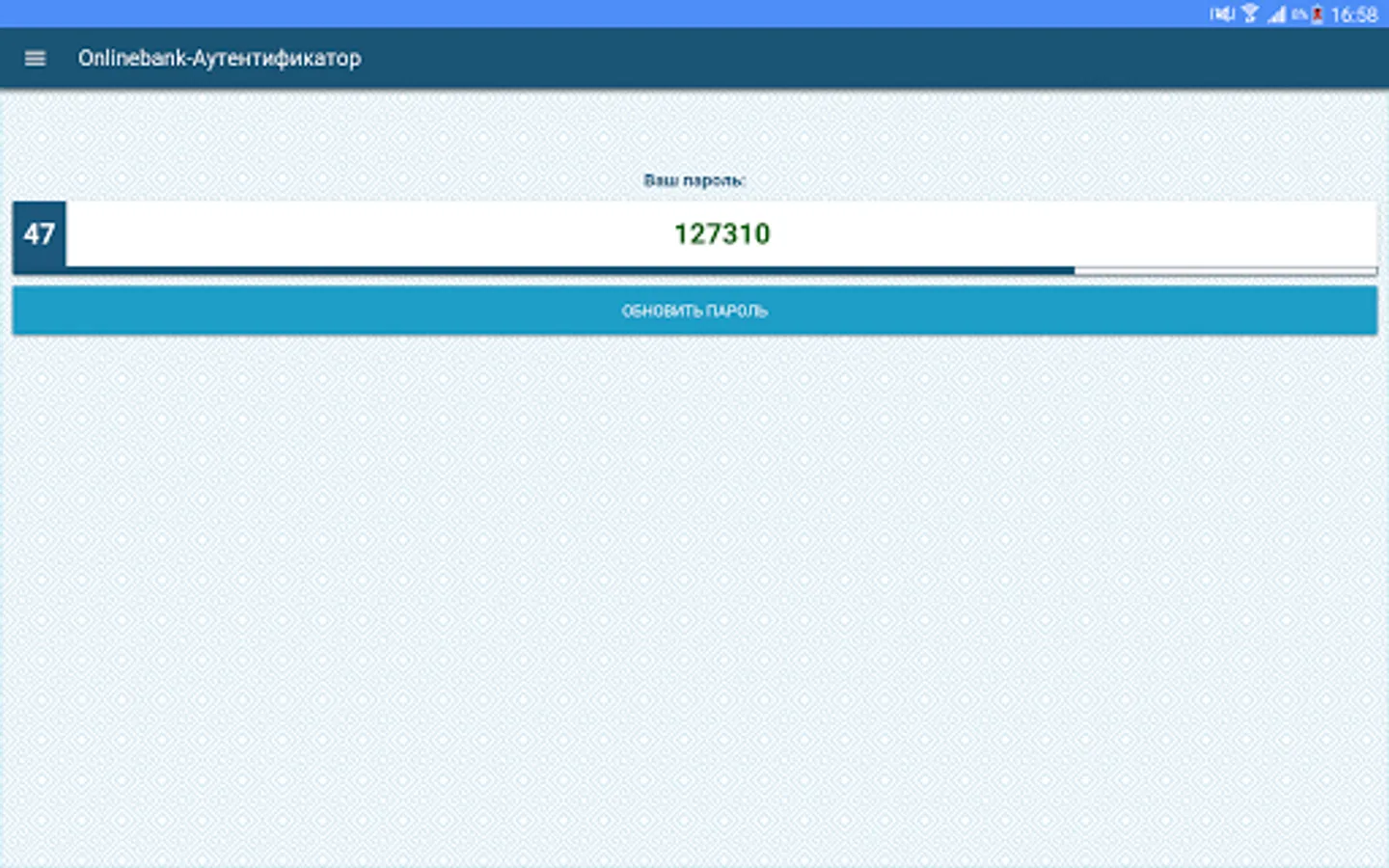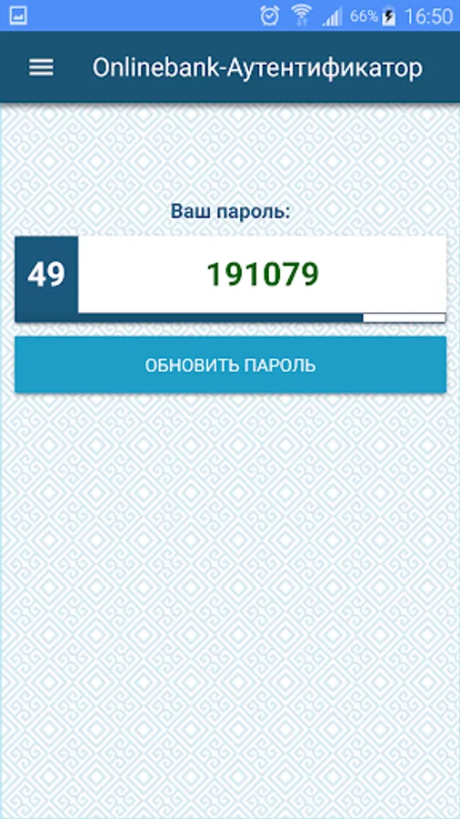 4. After 1-3 points the app will generate one-time passwords at regular intervals. At any time, you can generate a new password by clicking the "Update password" button