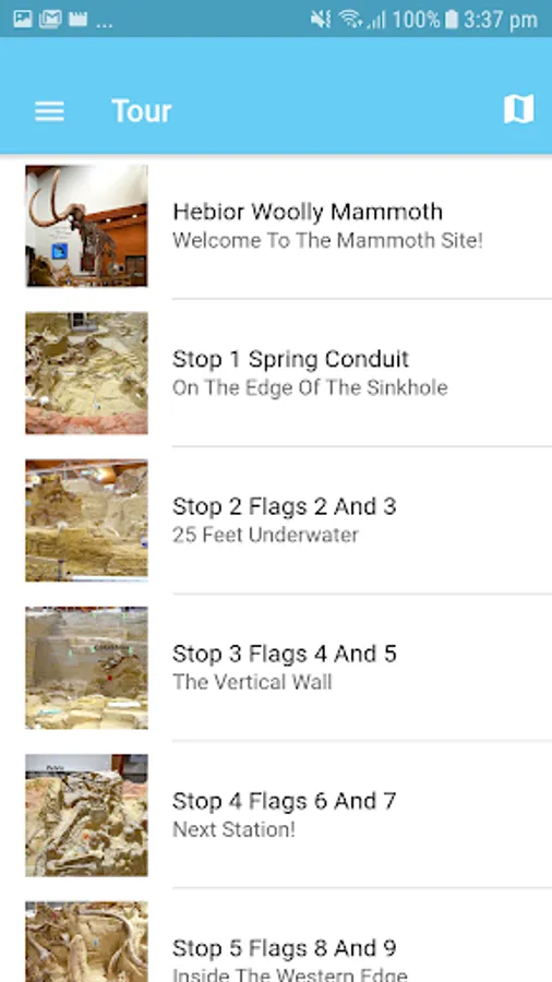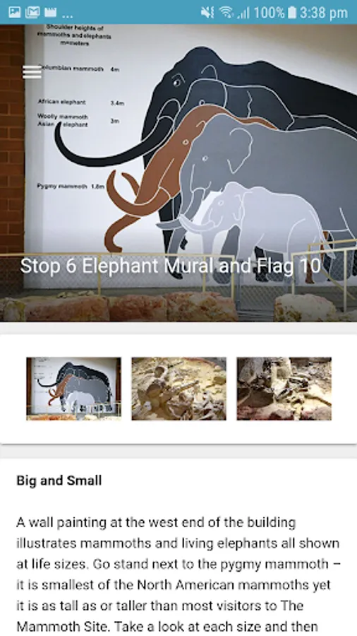 This app takes you through a short series of station stops along a ¼ mile long covered pathway around and through a now-dry sinkhole pond filled with mammoth skeletons. Each station stop provides detailed information about the active mammoth dig and helps you understand the hundreds of mammoth bones that you will see in front of you.