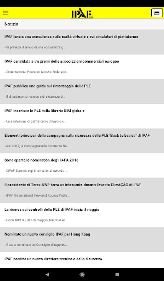 Through the app IPAF you can stay in constant contact with the world of access plane, be informed about exhibitions and events, and also updated on regulatory changes or new manufacturing standards.
