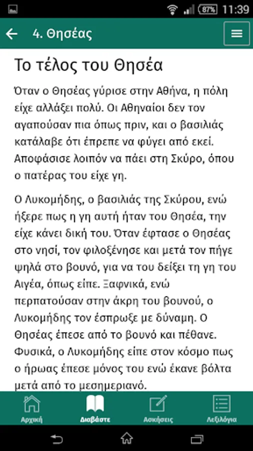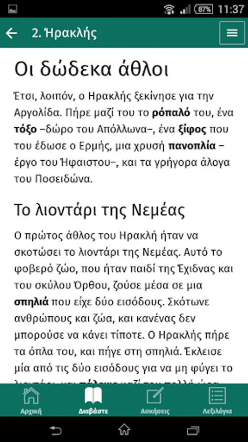 Mythology in Easy Greek Apps are language learning apps based on simplified adaptations of well known ancient myths selected from Greek mythology. They have been written by experienced Greek language teachers in the simplest possible language and are accompanied by related exercises. The apps aim at improving the learner’s reading comprehension skills and building up their vocabulary. The narratives may be read and further exploited by the learner with or without the help of a teacher or a dictionary. There are three Mythology app titles all written for learning Stage 3.