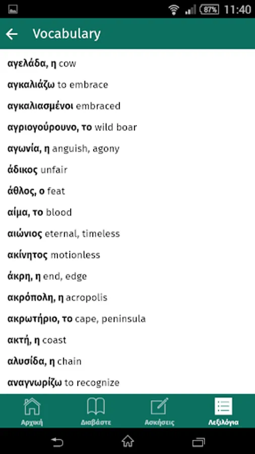 You will see the titles of the chapters so that you can get an idea of the contents. As you read through, you will find words or phrases in bold letters. Their explanations can be found in the Λεξιλόγια (Vocabularies) section.
