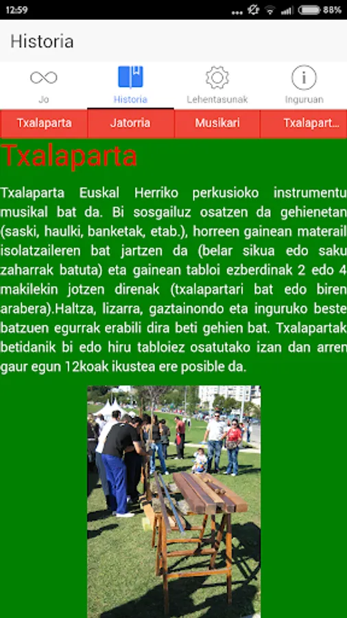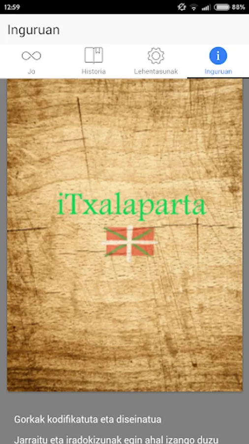 With configurable sounds and a friendly environment, you will enjoy this application. Translated into 4 languages and history and data of interest to delve into the world of txalaparta .