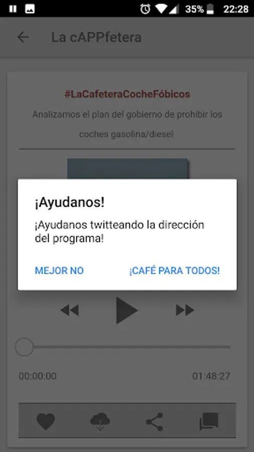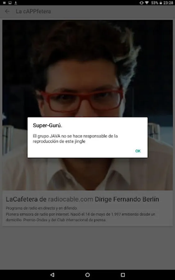 LacAPPfetera is an app that allows you to listen to the La Cafetera program on radiocable.com.